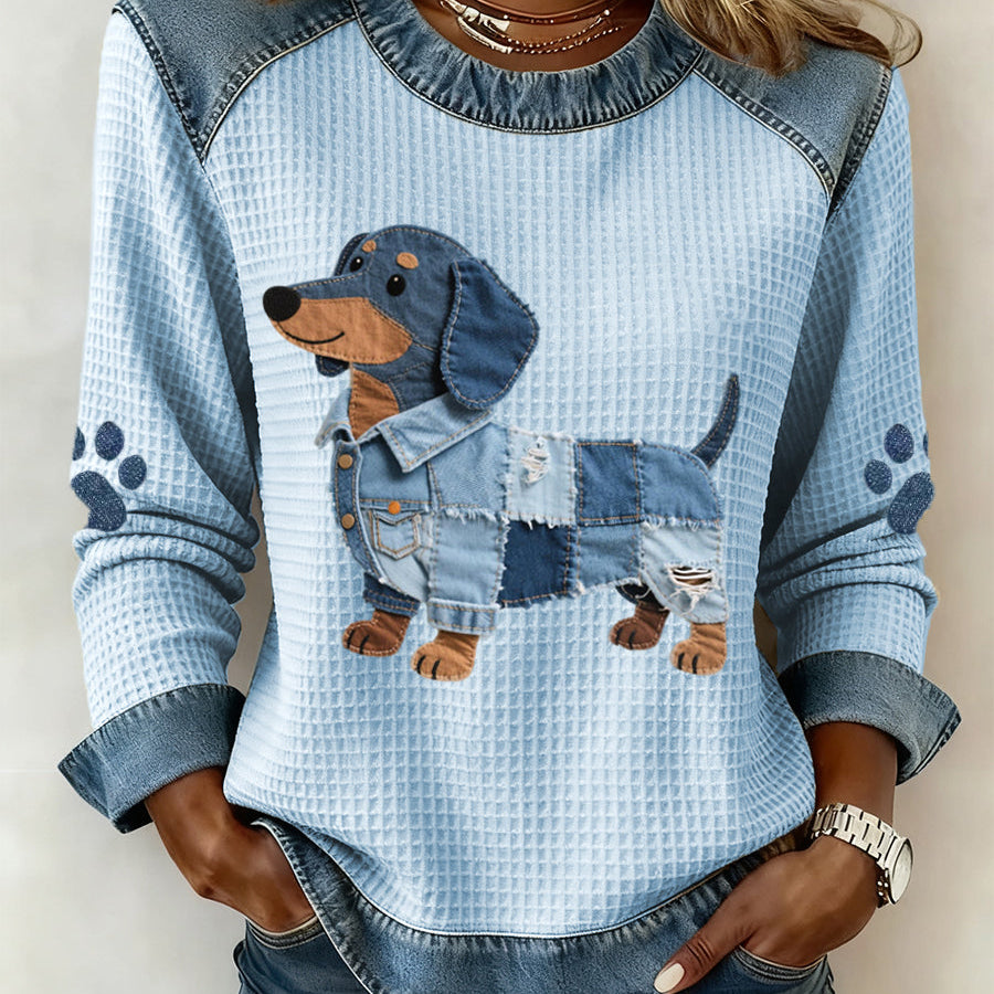 Nuria - Okouzlující jezevčík s denimovým patchworkem