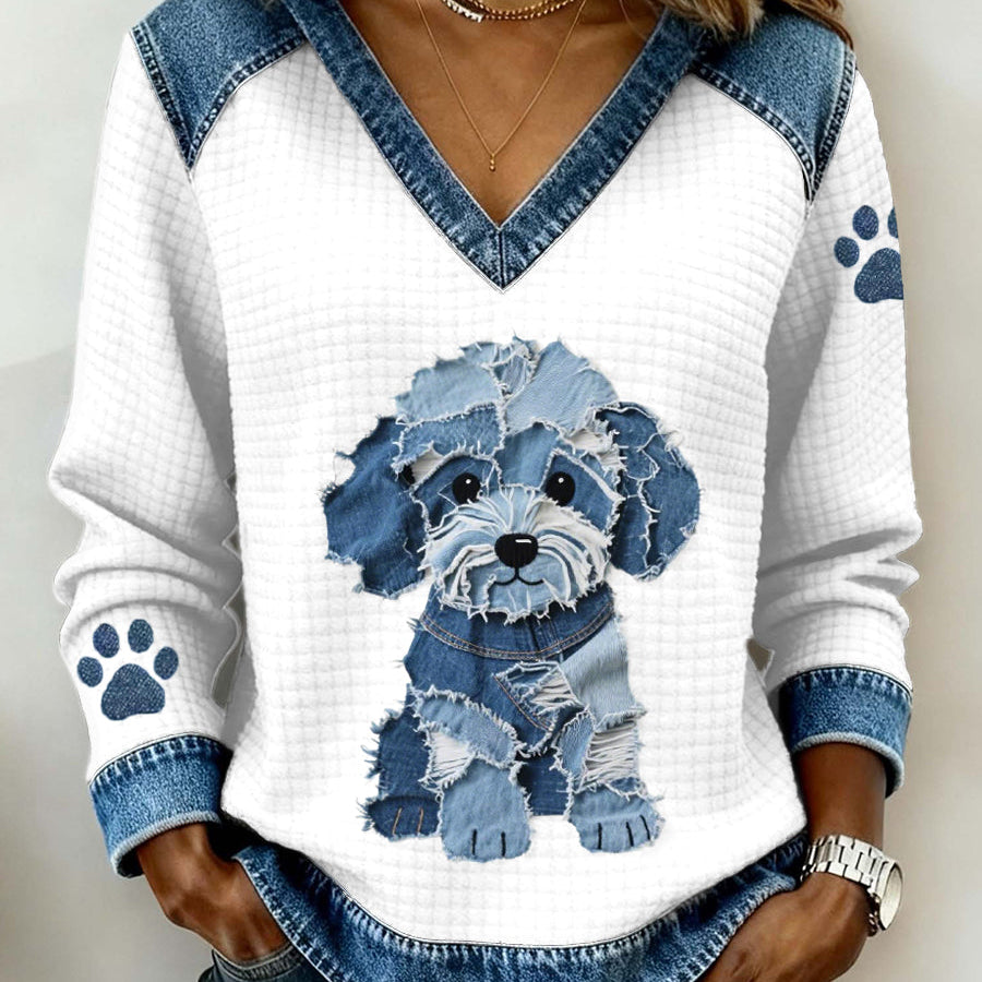 Paloma - Dámský retro top s V výstřihem, patchwork s potiskem zvířat, pohodlný a volného střihu