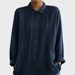Vintage detaily: Přední strana je zdobena precizním řasením a vsadkami z jemné krajky, což košili dodává historický šarm a eleganci.