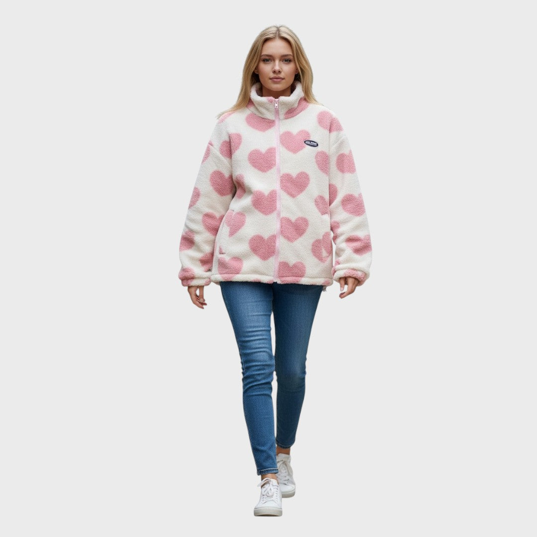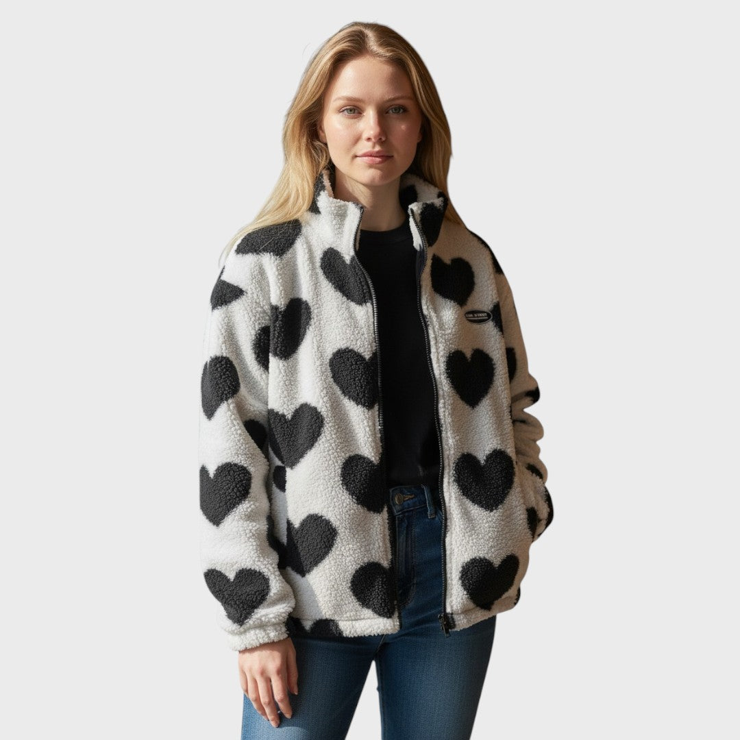 Tento kabát je dokonalým spojením pohodlí a stylu. Jeho hebká tkanina příjemně zahřeje a moderní vzor se srdíčky přidává na šarmu i originalitě. Ideální pro ženy, které milují cítit se dobře a zároveň vyjadřovat svou osobnost prostřednictvím módy. Neodolatelný kousek, který zahřeje i rozzáří váš outfit.