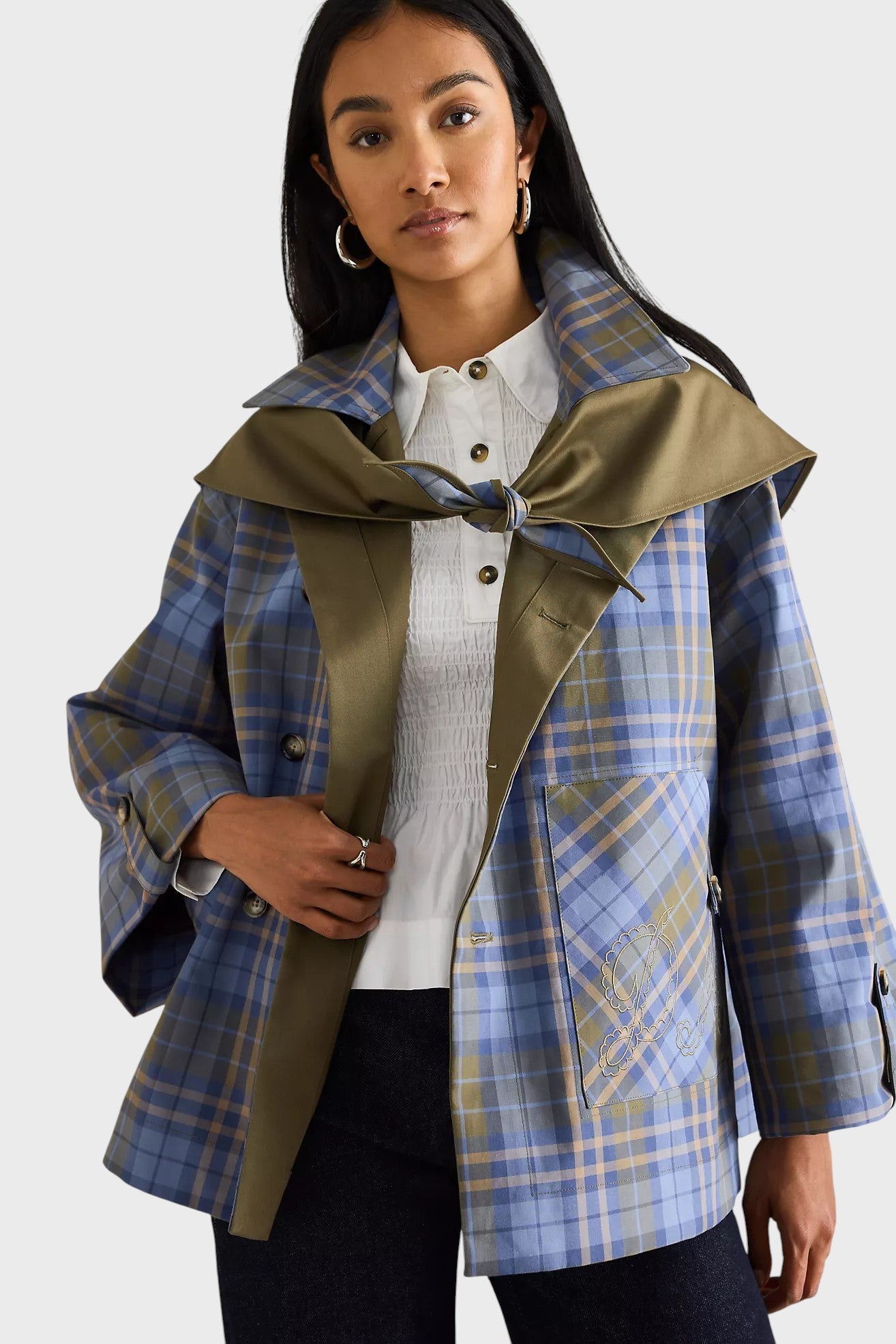 Beatrix | Bavlněná pelerínová bunda s kostkou