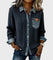 Stylové akcenty: Džínová náprsní kapsa s koženým detailem a stříbrné knoflíky podtrhují sportovně-elegantní charakter tohoto modelu.
