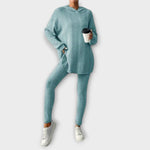 Helen Set je vyroben z ultra měkké, prodyšné tkaniny, což ho činí ideálním pro relaxaci nebo neformální výlety. S odpovídajícím topem a kalhotami nabízí tento set elegantní, a přitom útulný vzhled, který je dokonalý pro jakoukoli příležitost.
