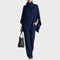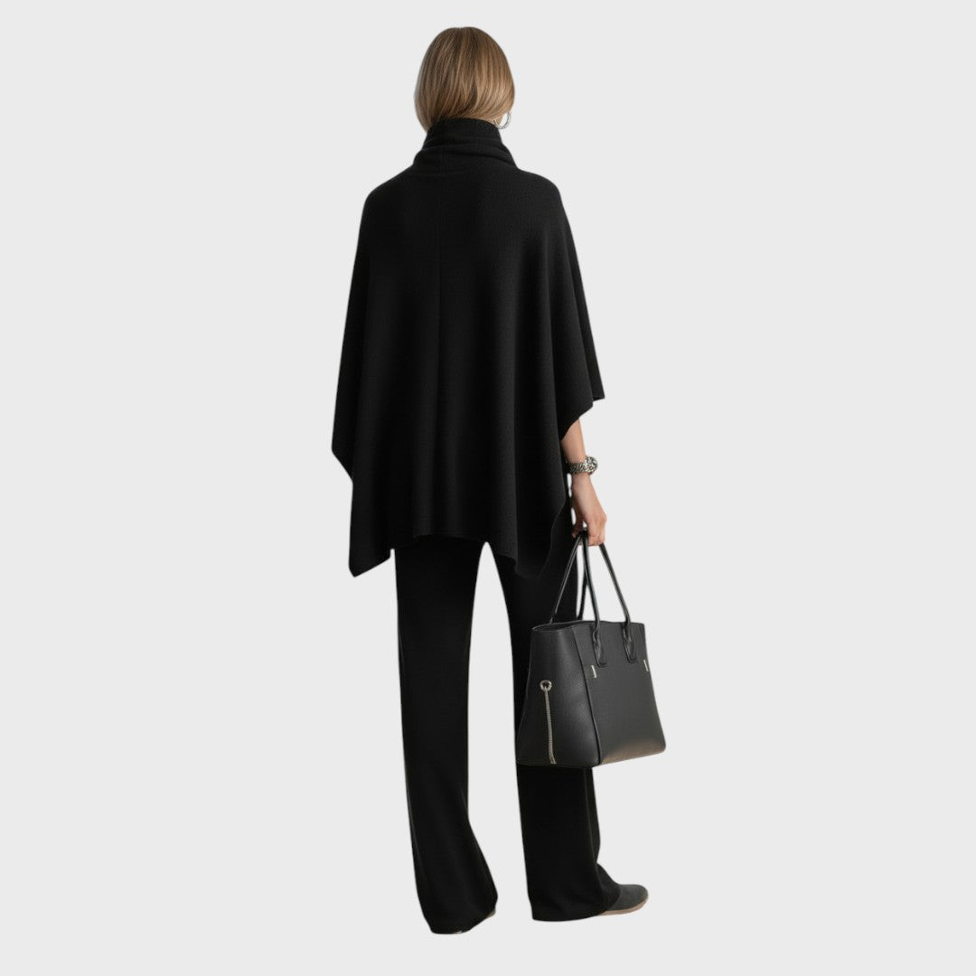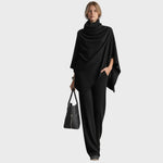 Model Elena přináší do vašeho šatníku novou úroveň ležérního luxusu. Tento dvoudílný komplet, skládající se z asymetrického ponča s bohatým rolákem a kalhot se širokými nohavicemi, je navržen pro ženy, které nechtějí dělat kompromisy mezi pohodlím a elegancí. Monochromatický vzhled opticky prodlužuje postavu a vytváří sofistikovanou siluetu, která působí nenuceně a dráže.