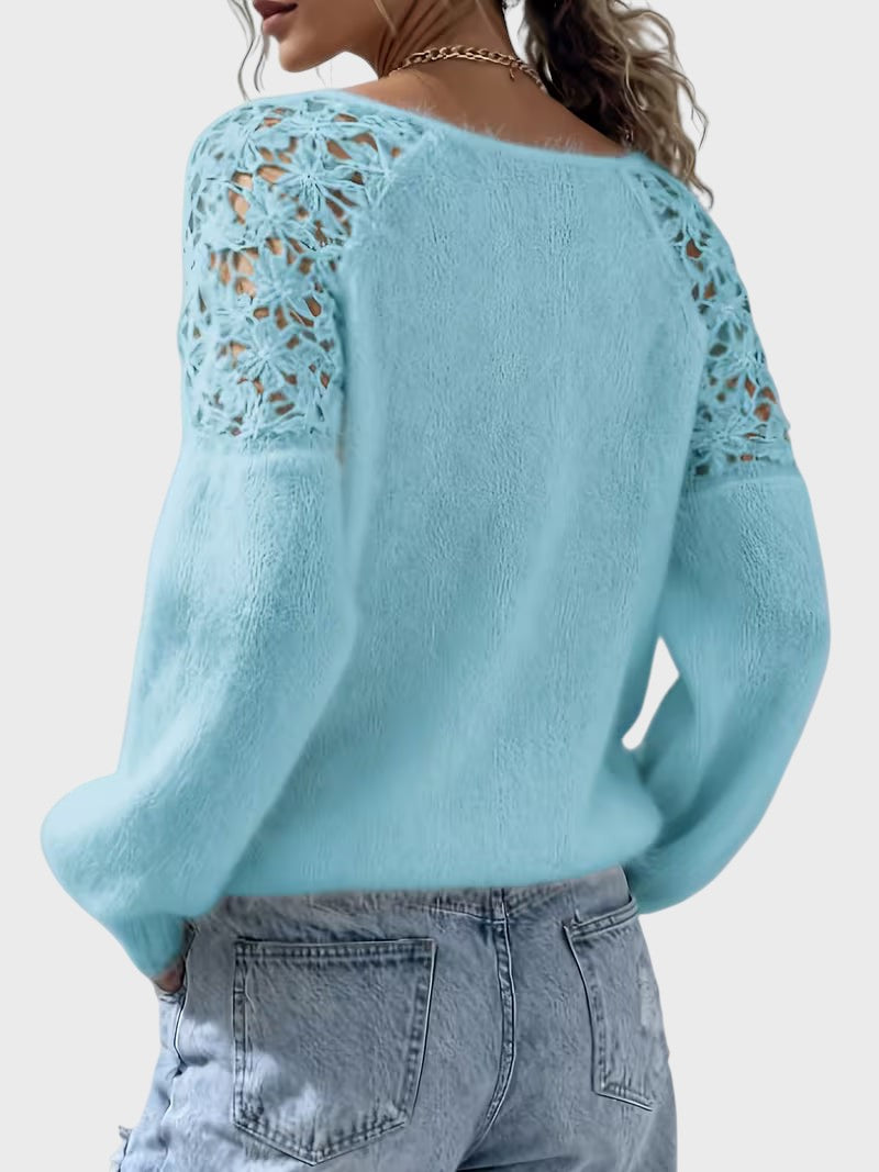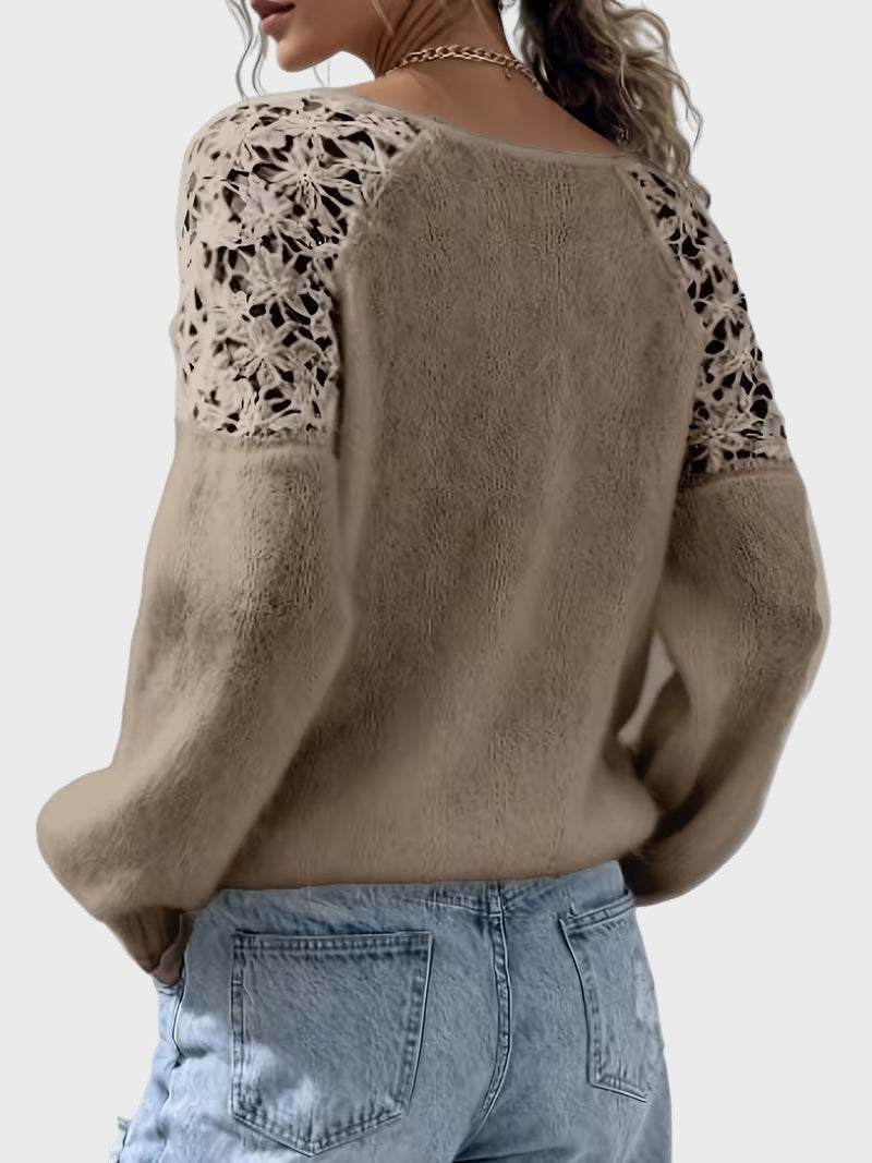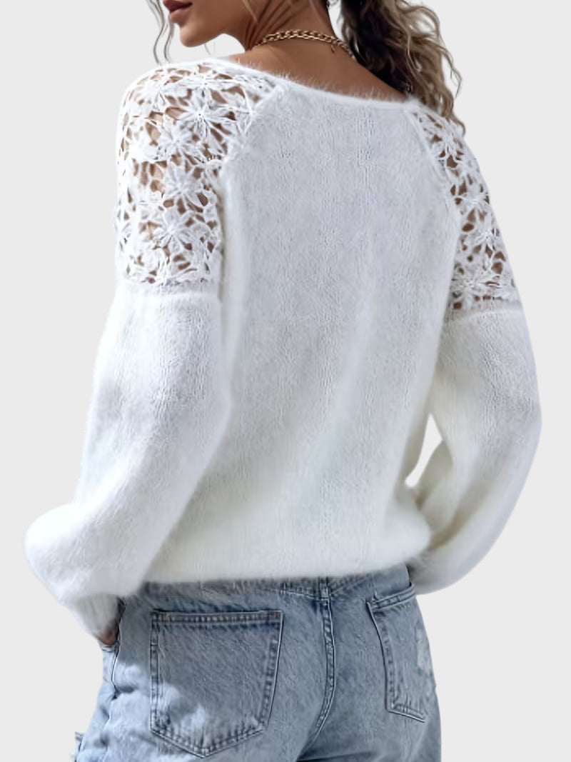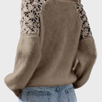 Viktorie je jemně pletený svetr s klidným a ženským vzhledem. Design má kulatý výstřih a dlouhé rukávy s detailem krajky, což zajišťuje rafinované provedení, které nepůsobí rušivě. Svetr se dobře kombinuje s džíny nebo elegantními kalhotami a hodí se na různé příležitosti během dne. Vyroben z bavlněné směsi, což zajišťuje příjemné nošení a je vhodný pro více sezón.