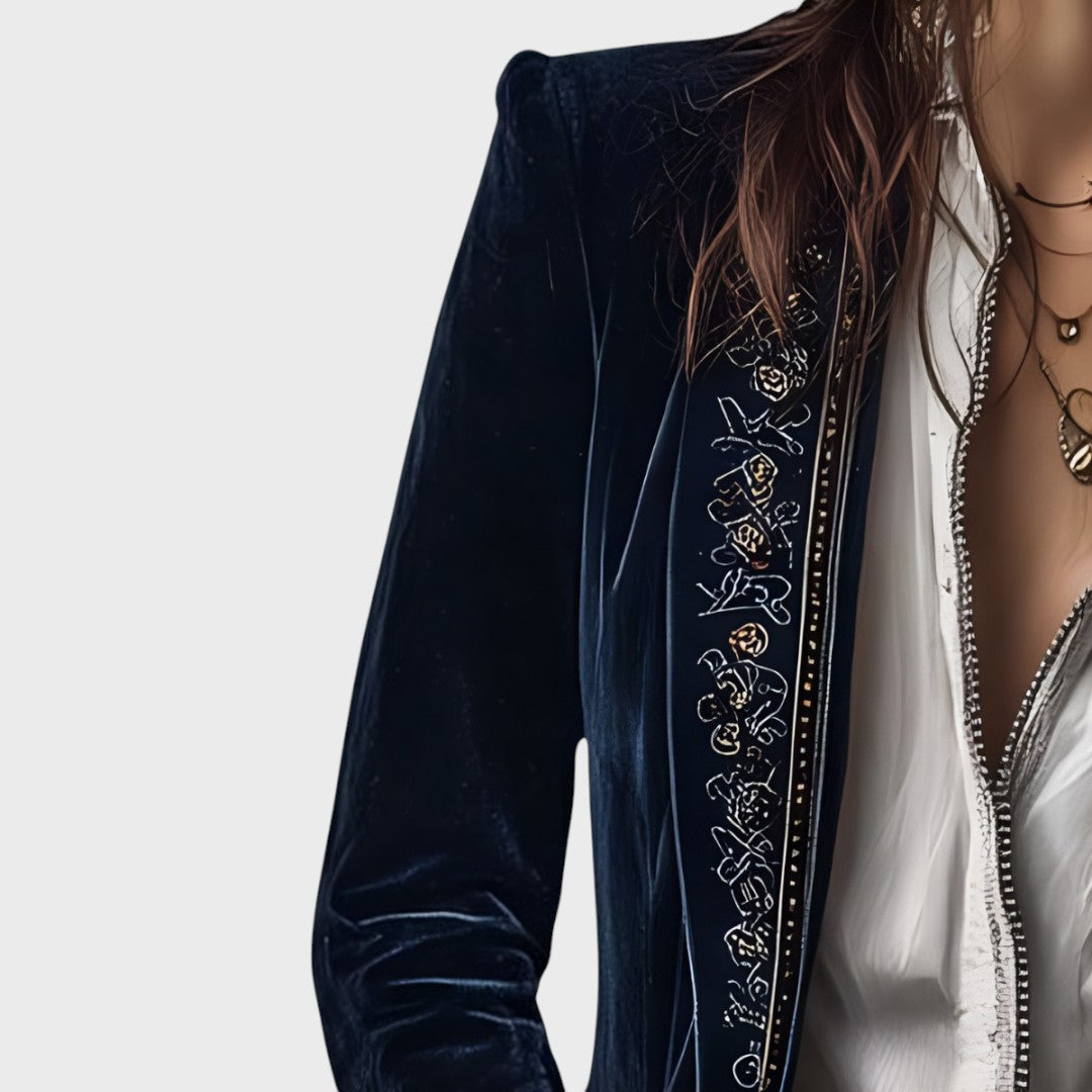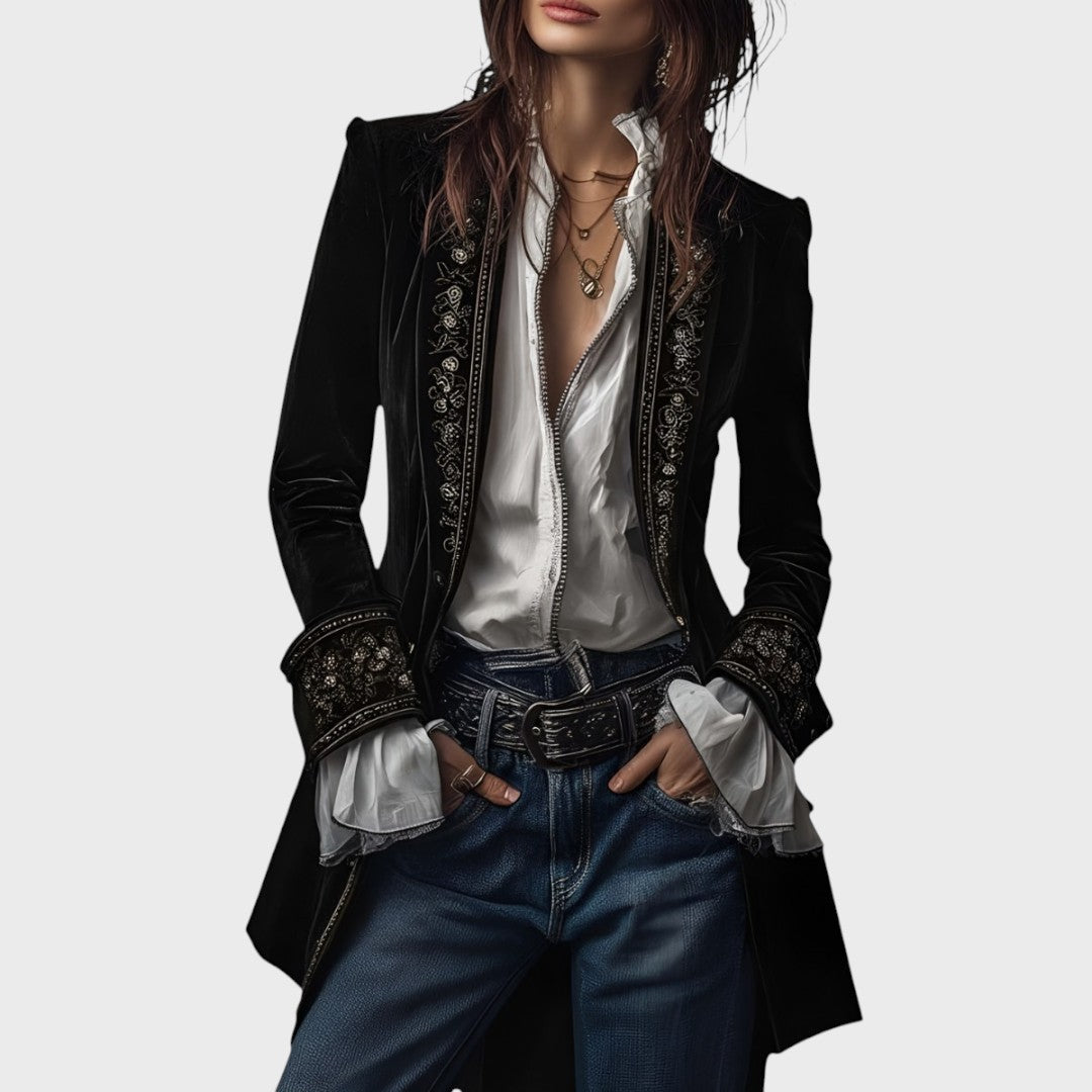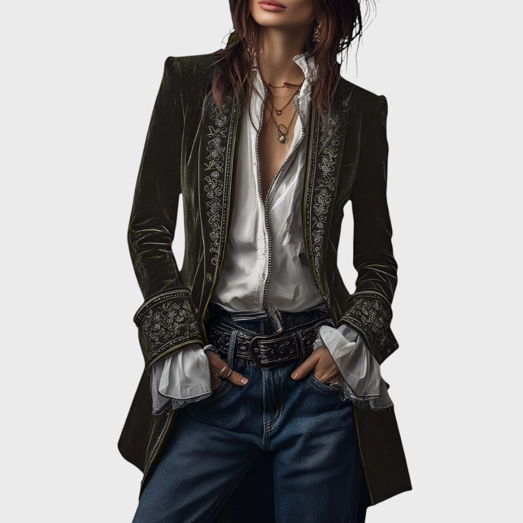 Nuria - Elegantní sametová bunda je více než jen kus oblečení; ztělesňuje styl, pohodlí a sebevědomí. Díky luxusnímu sametovému materiálu a vynikajícímu zpracování vám nejen poskytne příjemný pocit při nošení, ale také vám dodá zářivý vzhled v každé situaci. Dopřejte si pocit pohodlí a zároveň elegantního vzhledu.