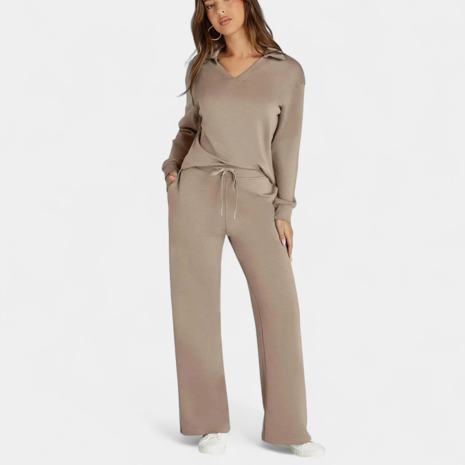 Set Jitka spojuje styl a komfort do dokonale sladěné dvoudílné soupravy. Je lehký, všestranný a navržený tak, aby ti dodal sebevědomí – ať už jsi na cestách, na kávě s přáteli nebo si užíváš klidný den doma.
