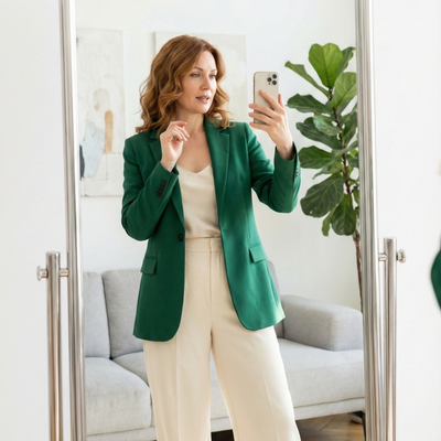 „Tohle sako je úžasný kousek pro oživení šatníku. Má skvělý, moderní střih, který skvěle sedí v ramenou. Látka působí velmi kvalitně, je pevná a barva je sytě smaragdová, přesně jako na obrázku. Dodá eleganci každému outfitu!“